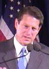 GoreVeterano de la Guerra de Vietnam y periodista, el actual vicepresidente de los Estados Unidos nació dentro de la política. Su padre, Albert Gore Sr. fue senador por el estado de Tennessee durante más de 30 años. Gore, quien siempre ha sido considerado como un gran defensor del medioambiente, nació en Washington D.C. y realizó su carrera en la Universidad de Harvard, en Boston. Entró en política en 1976, cuando fue elegido a la Cámara de Representantes. En 1984 se convirtió en senador. Está casado con Elizabeth "Tipper" Gore, es padre de cuatro chicas y acaba de convertirse en abuelo. |