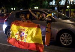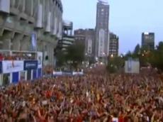 Celebración en Madrid del gol de Puyol: Alemania 0 - España 1