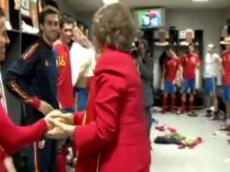 La Reina Doña Sofía baja al vestuario de la selección para felicitarla