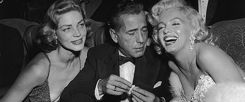 Lauren Bacall y Humphrey Bogart posan en 1953 junto a Marilyn Monroe en el estreno de "Como casarse con un millonario"