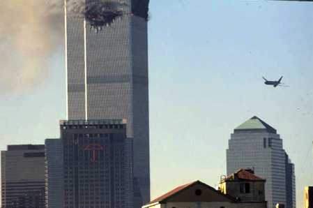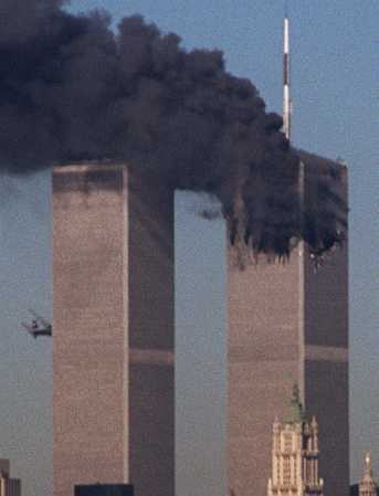 Momento en el que el segundo avión se estrella sobre las torres gemelas.