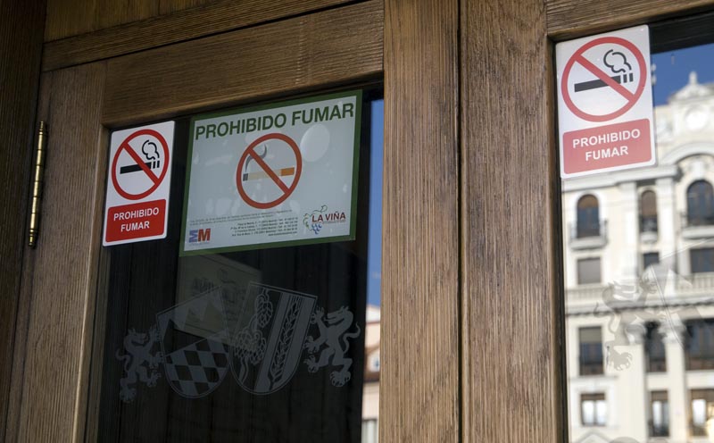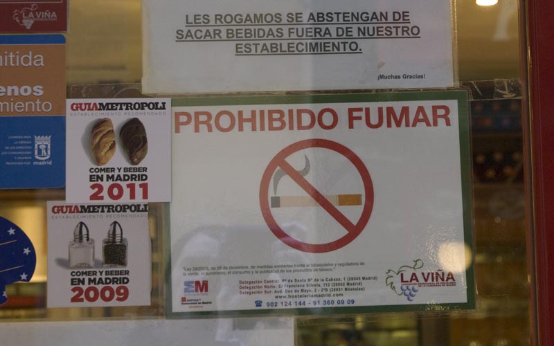 En algunos bares y cafaterías las señales se suceden, incluso por triplicado, como en la imagen, tomada en la plaza de Santa Ana.