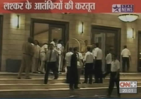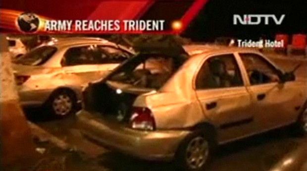 Imágenes del atentado tomadas por NDTV y redifundidas por Telemadrid.