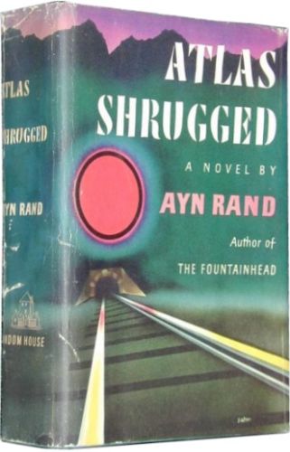 Portada de la edición que conmemora el cincuenta aniversario de la publicación de Atlas Shrugged.