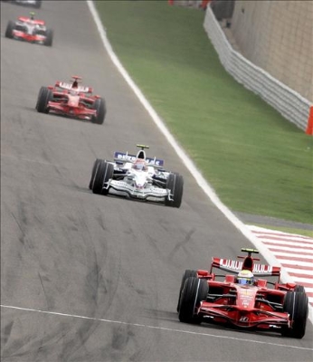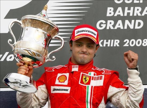 El piloto brasileño del equipo Ferrari de Fórmula Uno Felipe Masa en acción durante el primer entrenamiento en el circuito de Sakhir, cerca de Manama, hoy, viernes 4 abril de 2008, donde el próximo domingo 6 de abril tendrá lugar el Gran Premio de Fórmula Uno de Bahrein. EFE