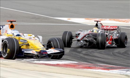 El piloto español del equipo Renault de Fórmula Uno Fernando Alonso atiende a los medios durante la rueda de prensa ofrecida en el circuito de Sakhier, cerca de Manama, el 3 de abril de 2008, donde se celebrará el próximo domingo 6 de abril el Gran Premio de Fórmula Uno de Bahrein. EFE