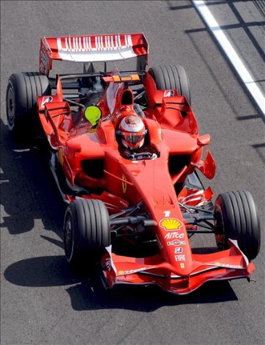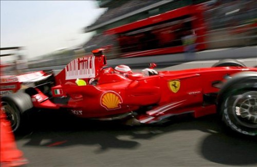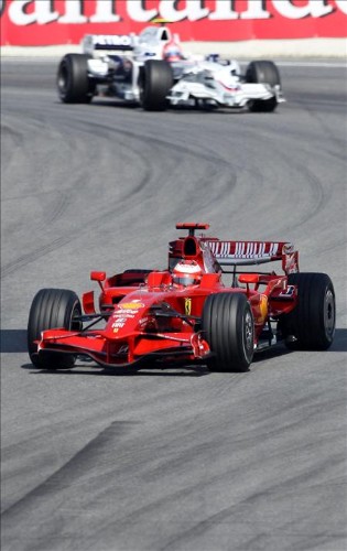 El piloto finlandés Kimi Raikkonen, de la escudería Ferrari, seguido de Robert Kubica, de BMW, durante la primera sesión de entrenamientos libres en la que acabó con el mejor tiempo. EFE