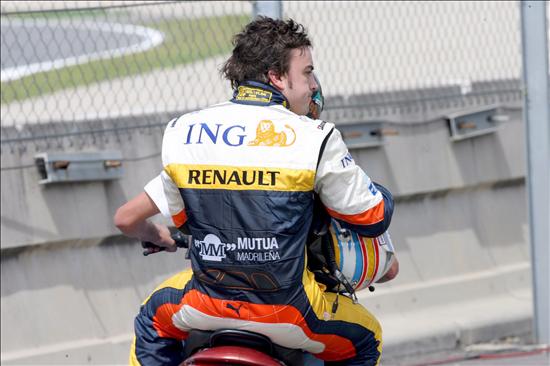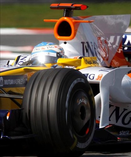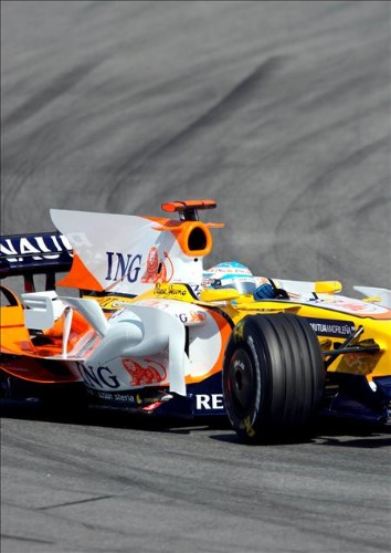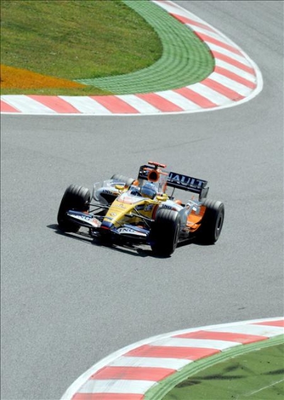 El piloto español Fernando Alonso, de la escudería Renault, durante la primera sesión de entrenamientos libres celebrada en Montmeló, donde el domingo se disputa el Gran Premio de España de automovilismo. EFE