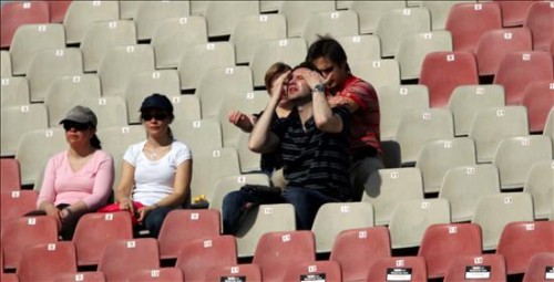 Aficionados durante la primera sesión de entrenamientos libres celebrada hoy en el Circuit de Cataluña, donde el domingo se disputa el Gran Premio de España de automovilismo. EFE