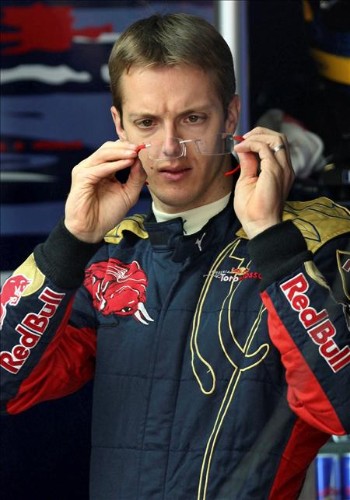 El piloto francés de Fórmula Uno Sebastien Bourdais, del equipo Toro Rosso, durante la primera sesión de entrenamientos libres del Gran Premio de España de automovilismo que se correrá este próximo domingo en el Circuito de Cataluña en Montmeló (Barcelona). EFE