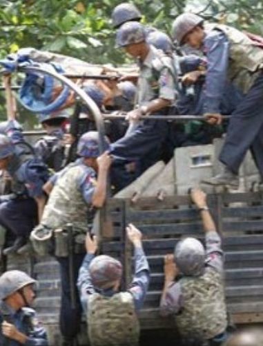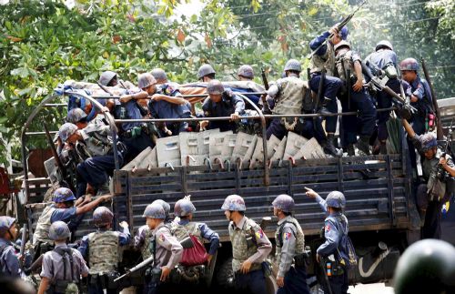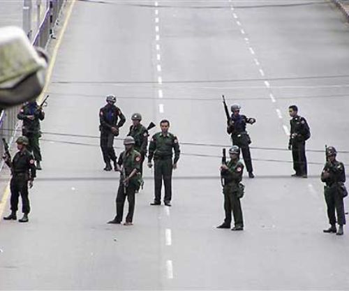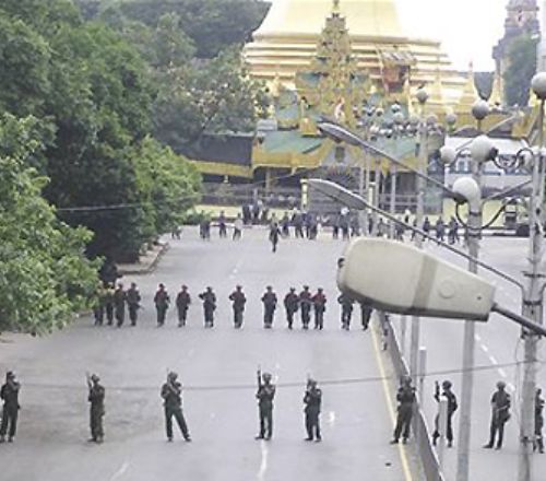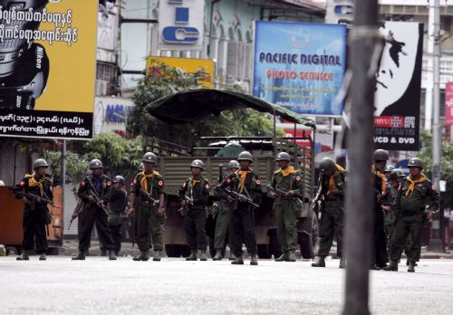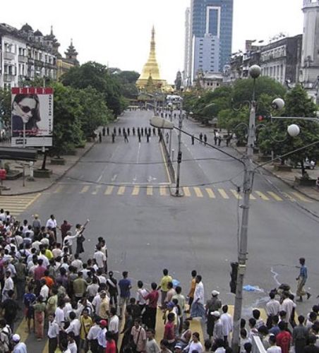 Las calles de Rangún son ocupadas por miembros de la Liga Nacional por la Democrática.
