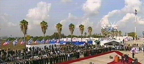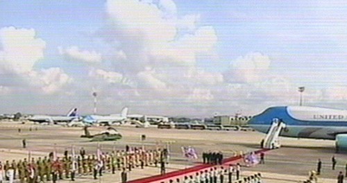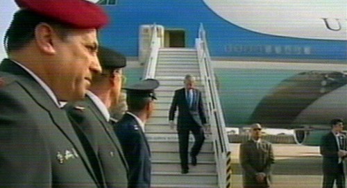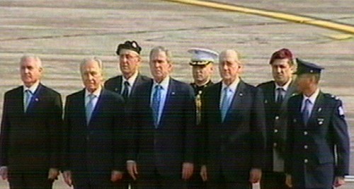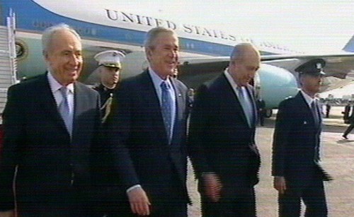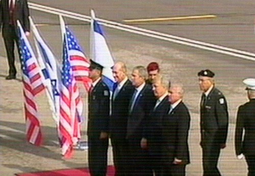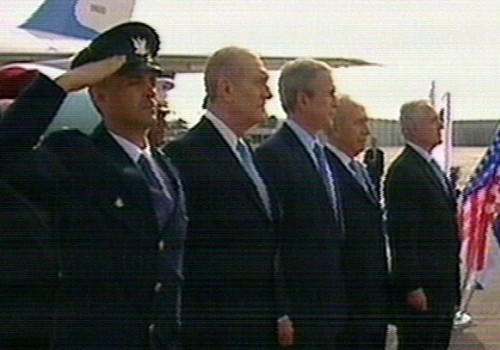Bush dijo que existe una "nueva oportunidad para la paz" en Tierra Santa a su llegada al aeropuerto "David ben Gurion" de Tel-Aviv. (Imagen de la televisión)