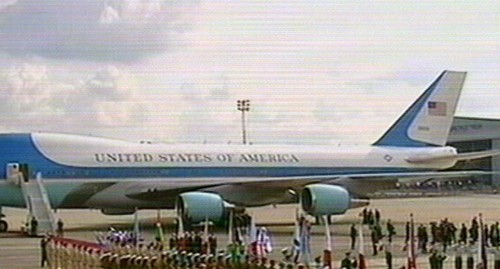 Un fuerte dispositivo policial y militar mantendrá la seguridad de Bush y su comitiva. (IMagen de la televisión)