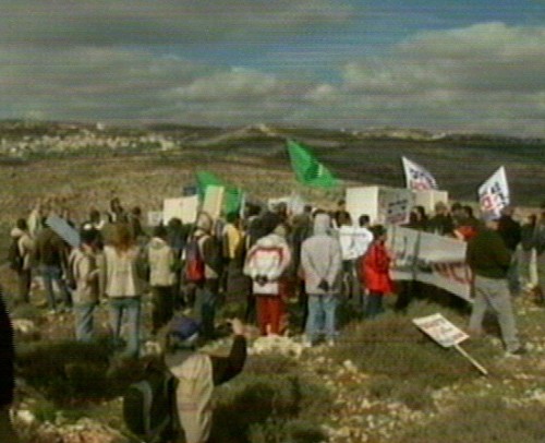 Miembros de organizaciones israelíes de derecha, contrarios al establecimiento de un Estado palestino, han protestado contra la visita de Bush. (Imagen de la televisión)