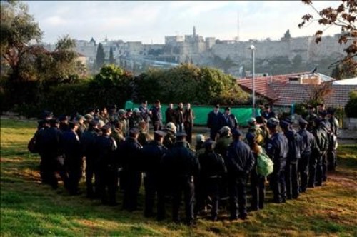 Más de diez mil efectivos se ocupan de la seguridad de la delegación estadounidense en Jerusalén. En la imagen, policías israelíes recibiendo instrucciones. (EFE)