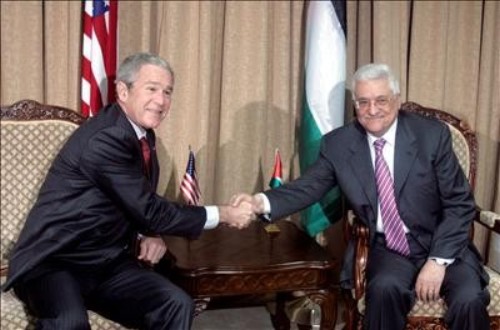 Bush y Mazen durante el encuentro que sostuvieron en la Mukata de Ramala. (EFE)