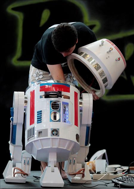 Muchos campuseros tienen ordenadores personalizados. En este caso tiene la forma del R5-D4, el robot que compraba Luke Skywalker en La guerra de las galaxias y que se veía obligado a cambiar por R2-D2 porque se estropeó antes de llevárselo. (EFE)