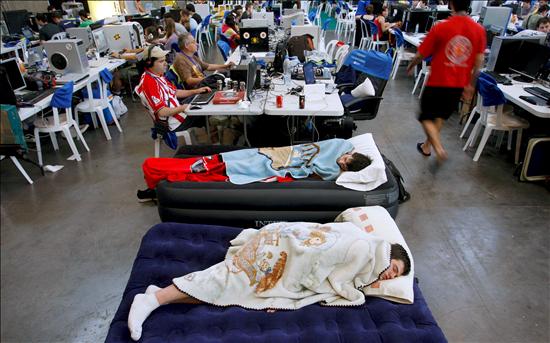 En las partys se suele dormir junto a los ordenadores. (EFE)