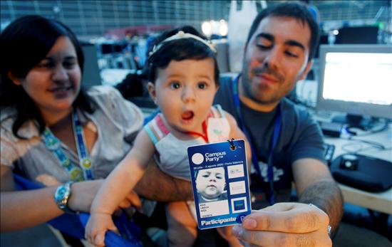 Sólo tiene seis meses de edad y apenas levanta un palmo del suelo de la Campus Party de Valencia, pero Inma puede celebrar que ostenta ya el título de campusera más joven de la historia. (EFE)