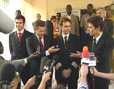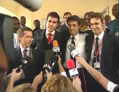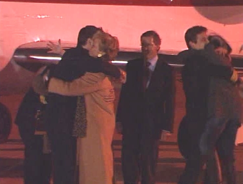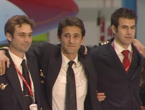 Los tres, se reencontraron con sus compañeras azafatas que habían sido liberadas por Sarkozy días antes. Todas fueron a esperar a Daniel, Sergio y Agustín a Torrejón de Ardoz. (LDTV)