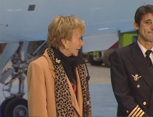 Momento en que descienden de la escalerilla y la vicepresidenta De la Vega abraza al auxiliar de vuelo Daniel González. (LDTV)