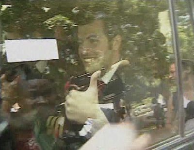 El copiloto Sergio Muñoz, sonriente mientras es trasladado al aeropuerto para regresar a España. (LDTV)