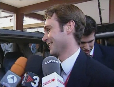 El copiloto Sergio Muñoz, muestra a los medios de comunicación su alegría por poder regresar a España. (LDTV)