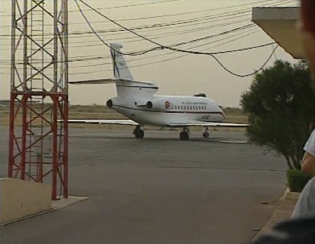 Las autoridades políticas y los españoles retenidos en Chad entran en el hangar del aeródromo. (LDTV)