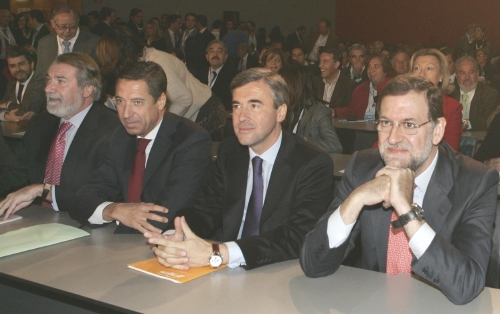 De izquierda a derecha: Jaime Mayor Oreja, Eduardo Zaplana, ángel Acebes y Mariano Rajoy, durante una sesión de trabajo de la Conferencia nacional del principal partido de la oposición. (LD)