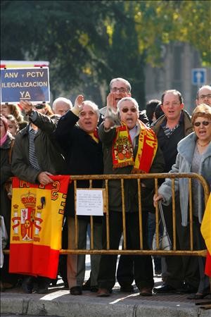 Decenas de personas reclamaron a las puertas del Congreso la ilegalización de ANV y PCTV. (EFE)