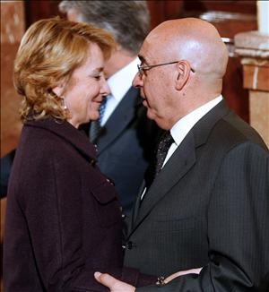 El presidente del Senado saluda a la presidenta de la Comunidad de Madrid, Esperanza Aguirre. (EFE)