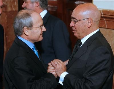 El presidente del Senado, Javier Rojo, saluda al presidente de Cataluña, José Montilla. (EFE)