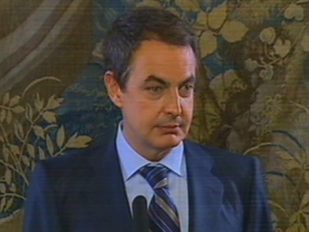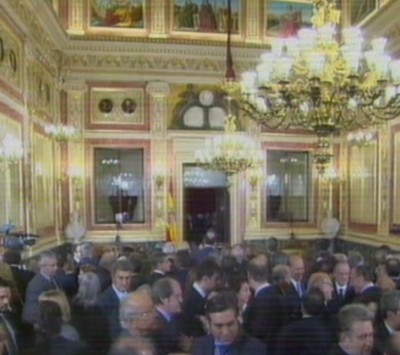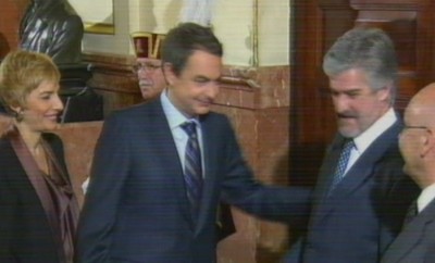 El presidente del Gobierno y su esposa son recibidos por Manuel Marín y Javier Rojo. (Imagen TV)