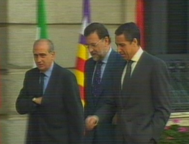 Jorge Fernández Díaz, Mariano Rajoy y Eduardo Zaplana llegan al Congreso. (Imagen TV)