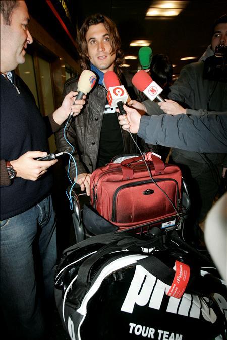 David Ferrer responde a las preguntas de los periodistas a su llegada al aeropuerto de Madrid-Barajas. (EFE)