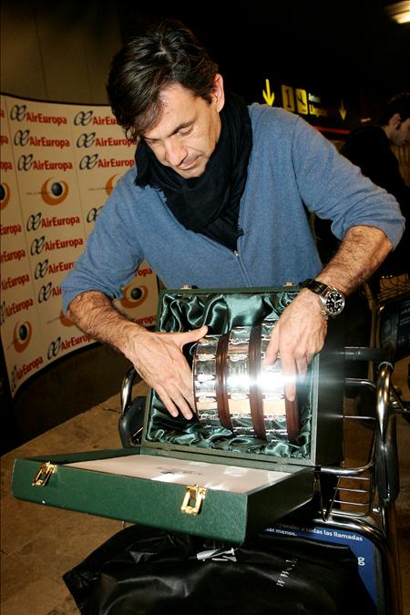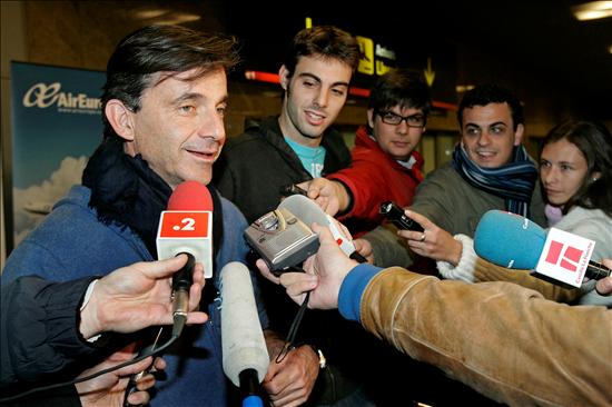 El presidente de la Federación Española de Tenis, Pedro Muñoz, a su llegada al aeropuerto de Madrid-Barajas. (EFE)