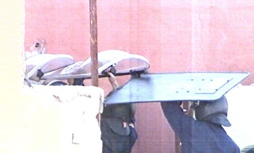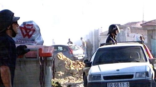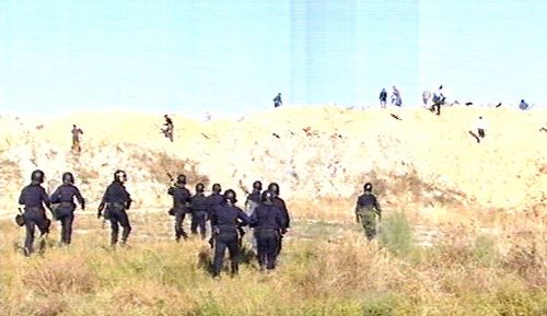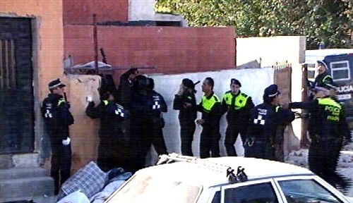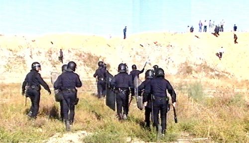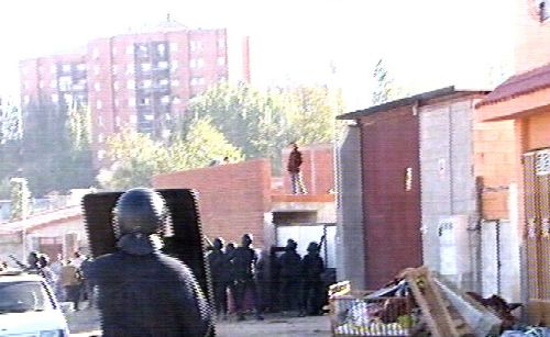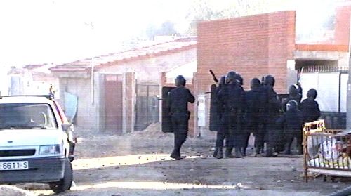 Los habitantes de ese poblado chabolista lanzaron contra los policías piedras y otros objetos, entre ellos alguna bombona de butano. (Imagen de la televisión)