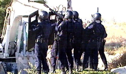 La Policía Nacional envió agentes a la Cañada Real ante la resistencia vecinal al intento de desalojo. (Imagen de la televisión)
