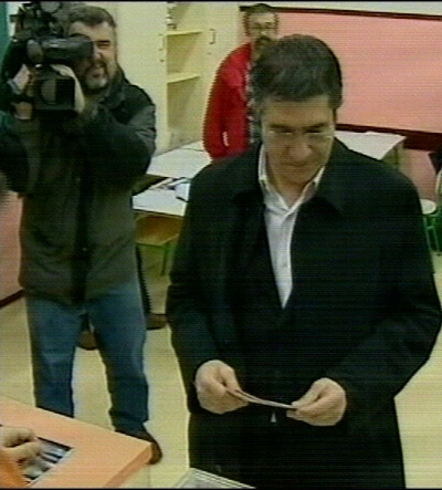 Con el recuerdo aún fresco de Isaías Carrasco, ex edil socialista asesinado por la banda terrorista ETA, la familia socialista acudía a votar. En la imagen, el secretario general del PSE-EE, Patxi López. (LD)