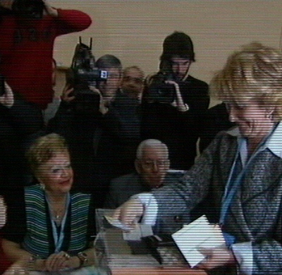La presidenta madrileña, Esperanza Aguirre, tras votar, formuló un deseo: "que en toda España se vote con libertad". (LD)