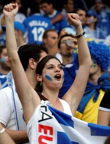 La afición griega animó en Salzburgo a su equipo, pero el actual campeón de Europa cayó ante Suecia por 0-2. (EFE)