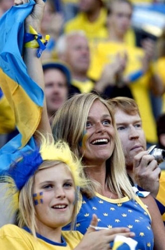 Aficionados suecos animan a su selección durante el encuentro ante Rusia en Innsbruck. (EFE)