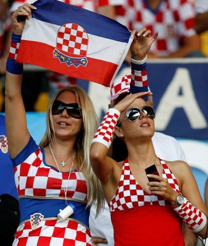 Dos aficionadas croatas animan a su selección durante el partido ante Turquía, de cuartos de final de la Eurocopa disputado en el estadio Ernst-Happel de Viena. (EFE)
