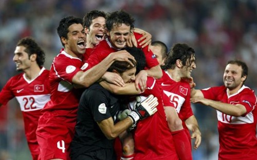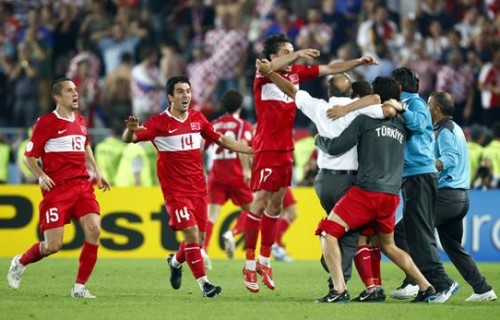 Ivan Klasnic (c) celebra su gol ante Turquía, el que supuso el 1-0 en el minuto 118 de partido. (EFE)