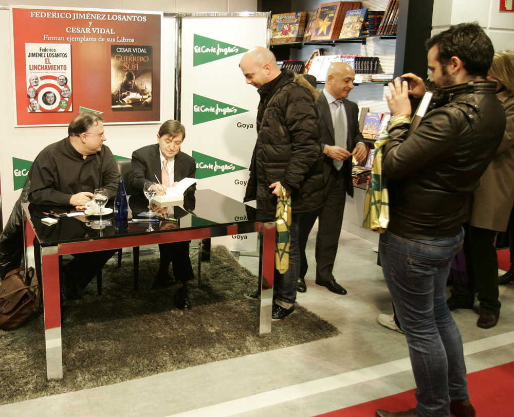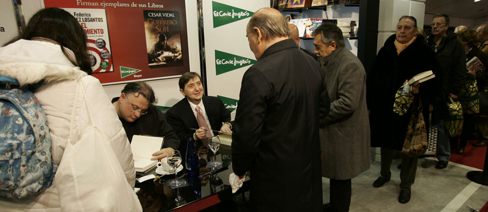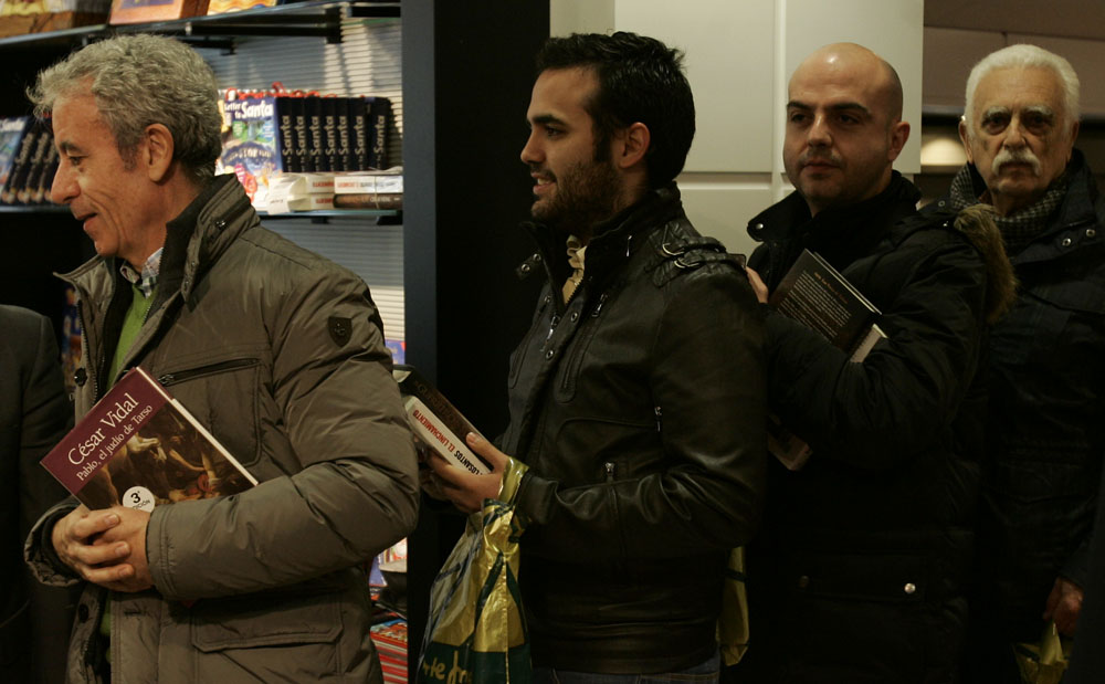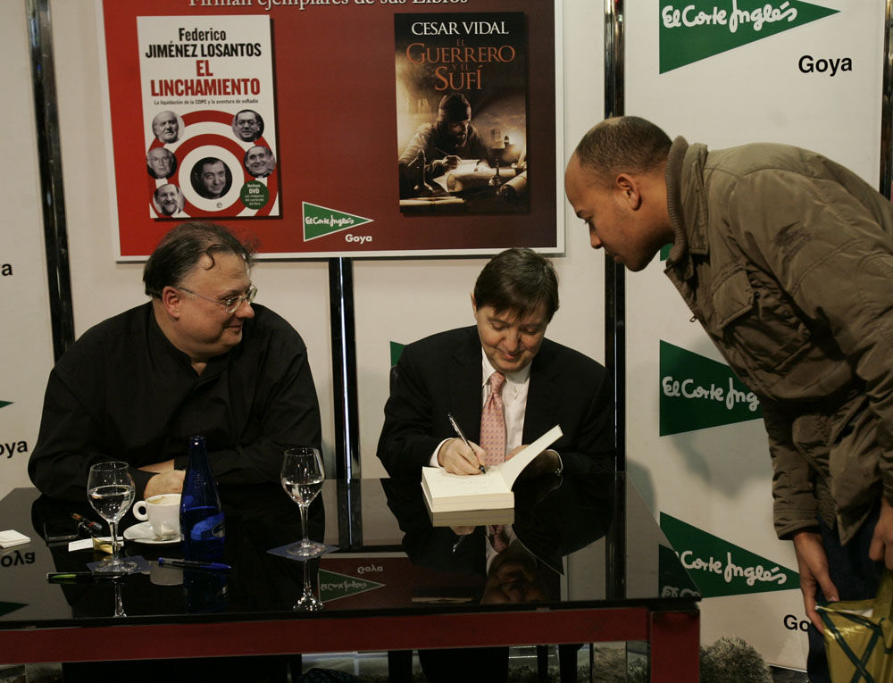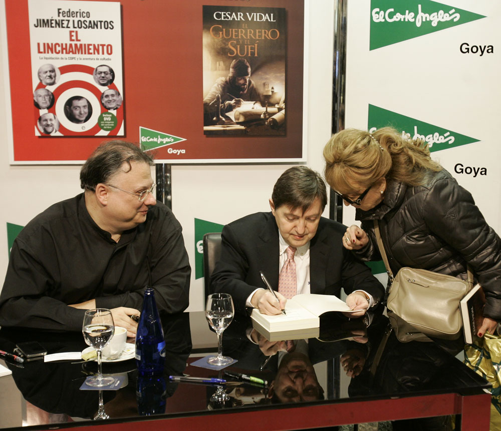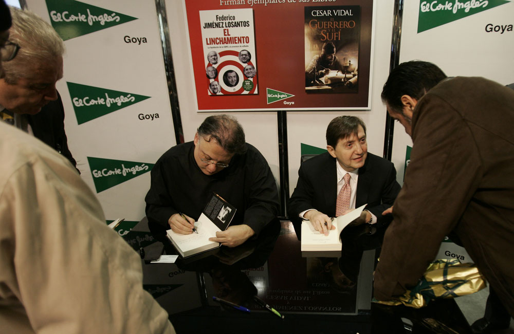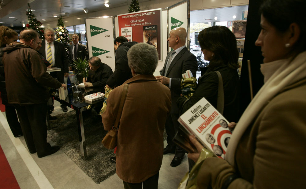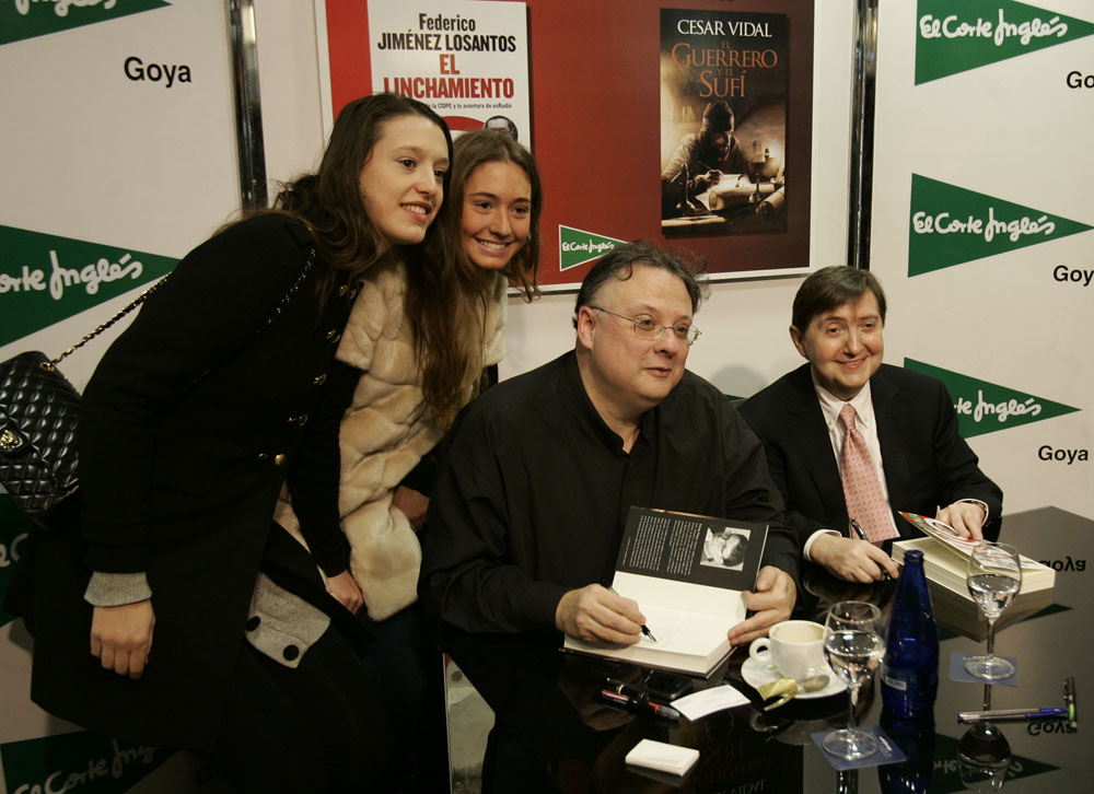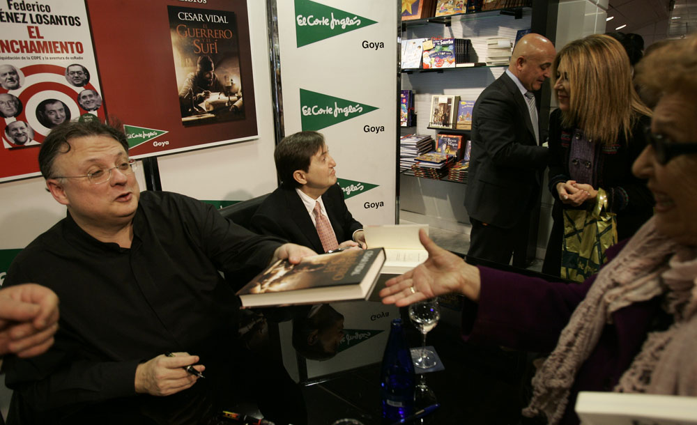 Minutos antes de que comenzara la firma de libros de Federico Jiménez Losantos y César Vidal en El Corte Inglés de Goya este sábado, la puerta del centro comercial estaba llena de gente. Provistos con los nuevo libro de Federico Jiménez Losantos (El Linchamiento -La Esfera de los Libros- )y de César Vidal (El guerrero y el sufí -Grijalbo-), esperaban pacientes a que comenzara la firma de libros.