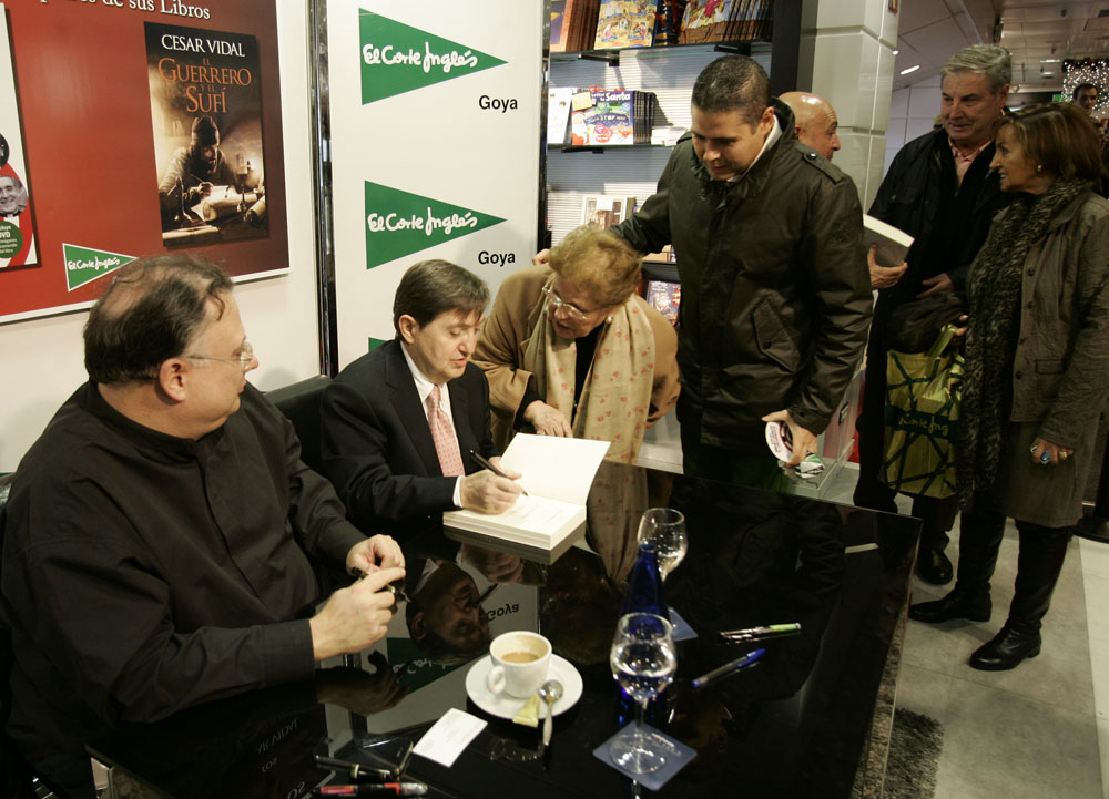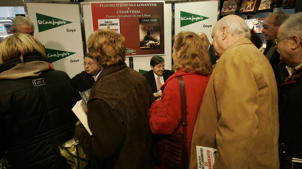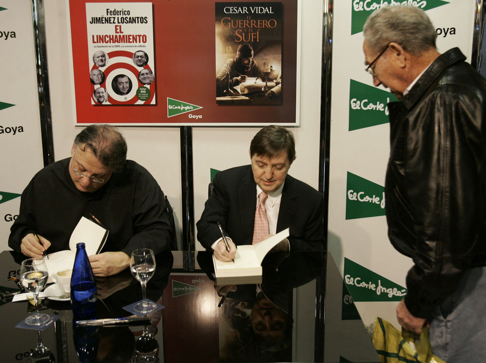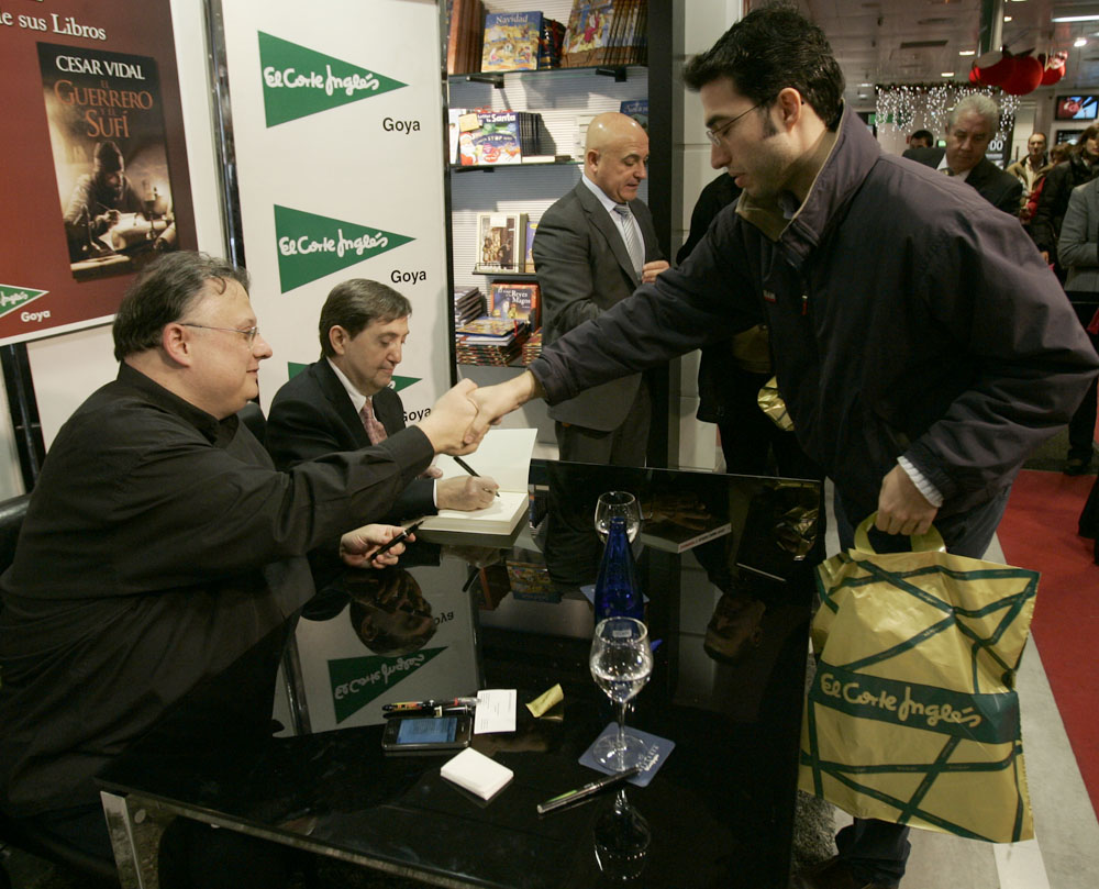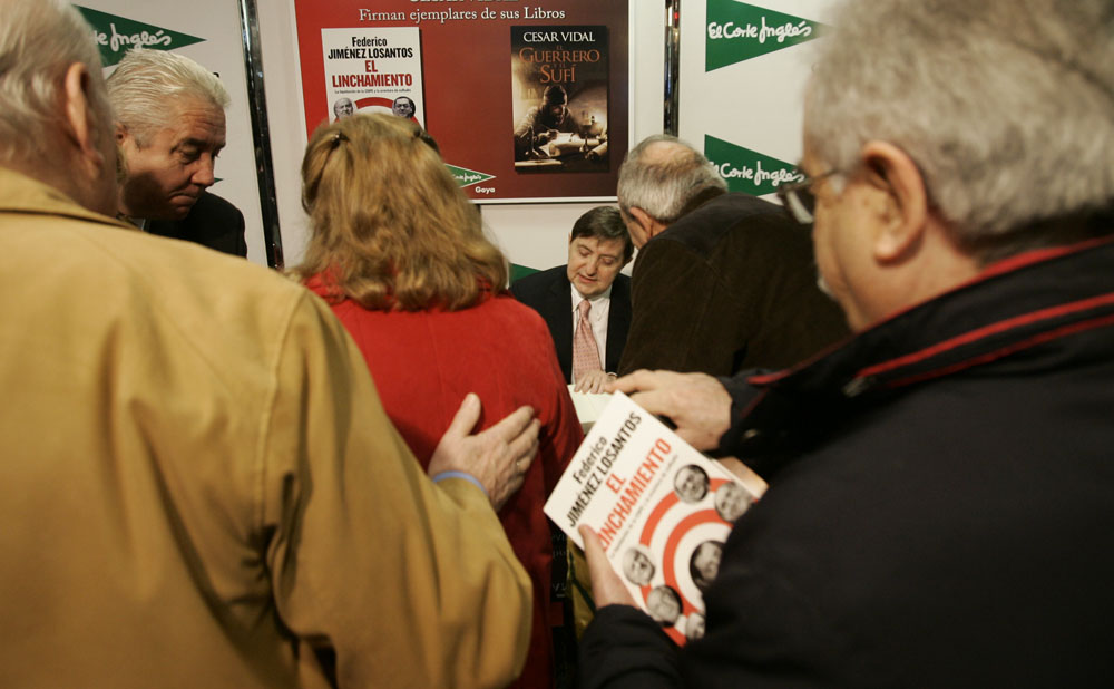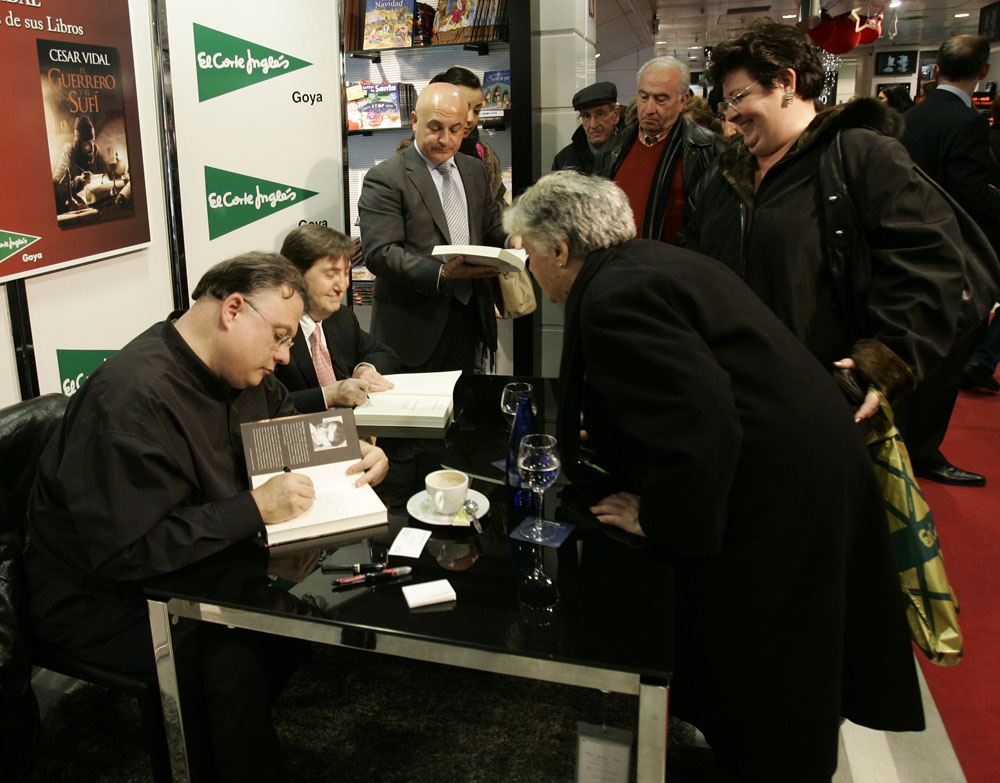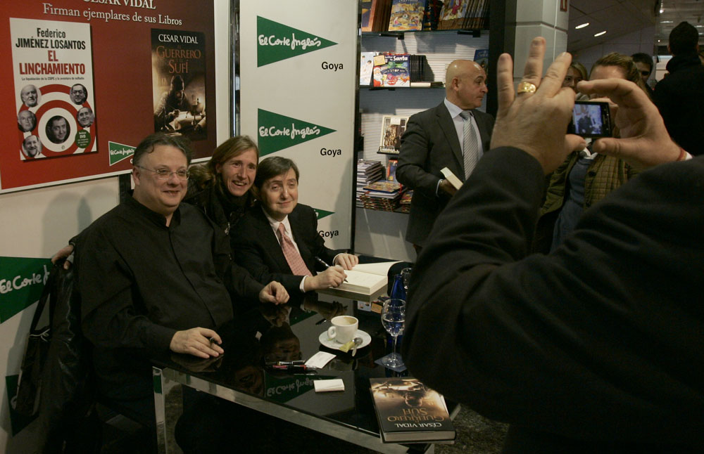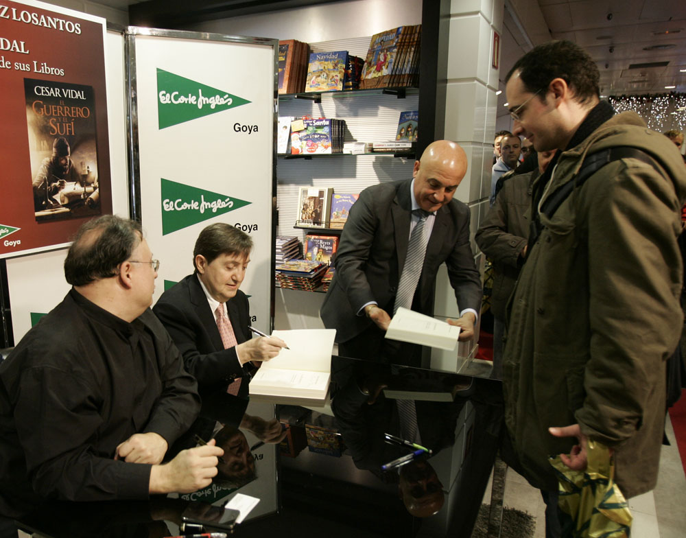 Minutos antes de que comenzara la firma de libros de Federico Jiménez Losantos y César Vidal en El Corte Inglés de Goya este sábado, la puerta del centro comercial estaba llena de gente. Provistos con los nuevo libro de Federico Jiménez Losantos (El Linchamiento -La Esfera de los Libros- )y de César Vidal (El guerrero y el sufí -Grijalbo-), esperaban pacientes a que comenzara la firma de libros.