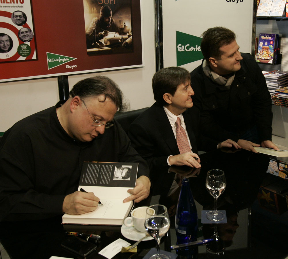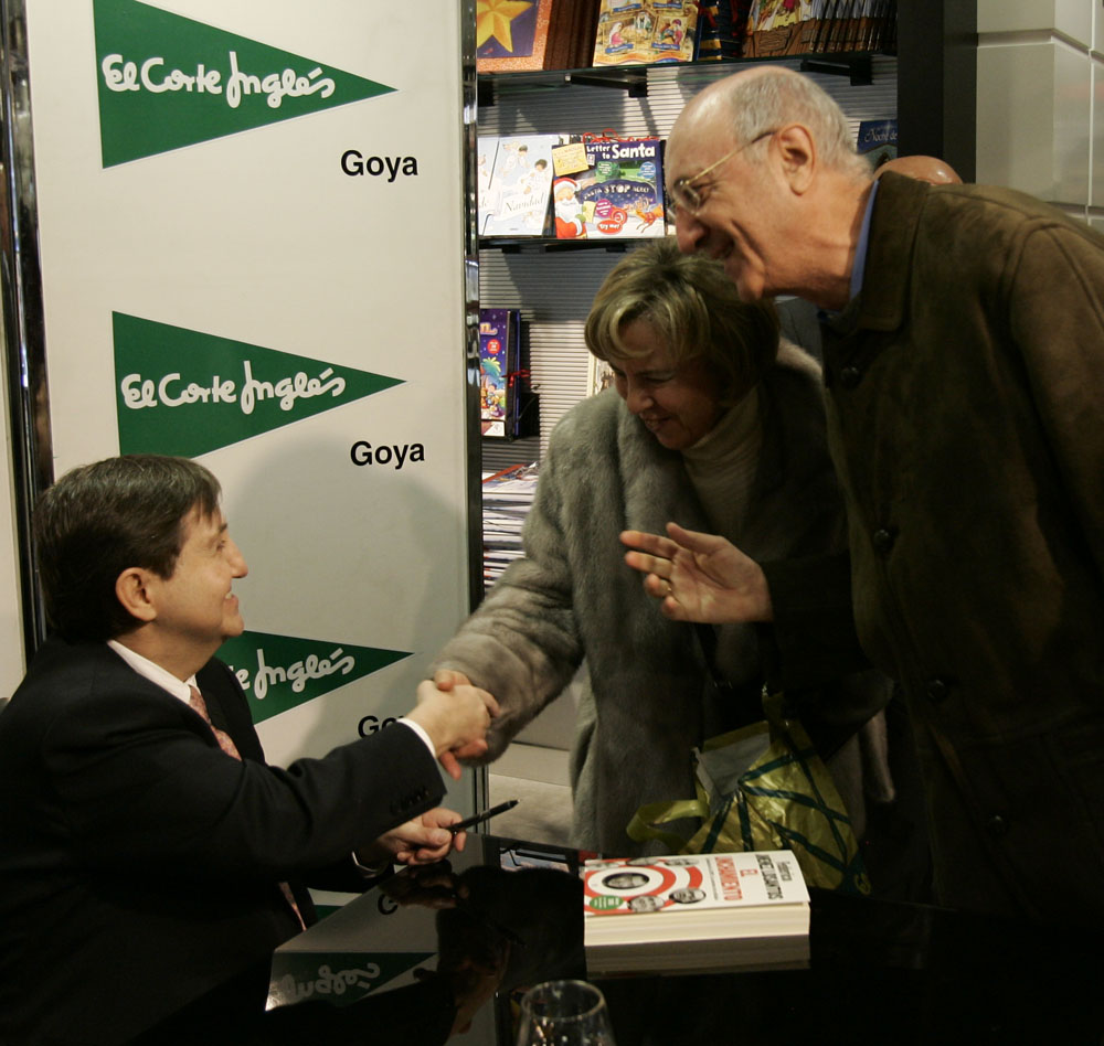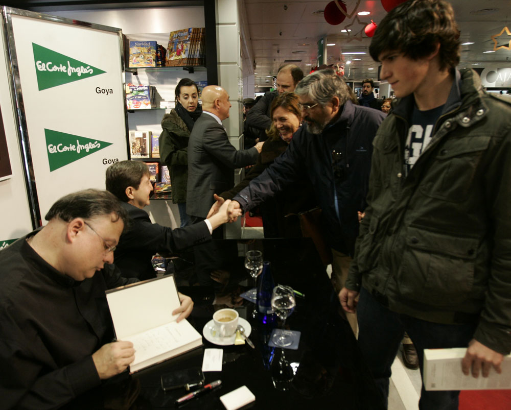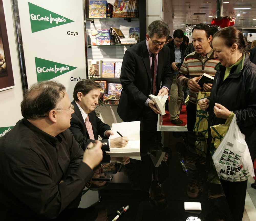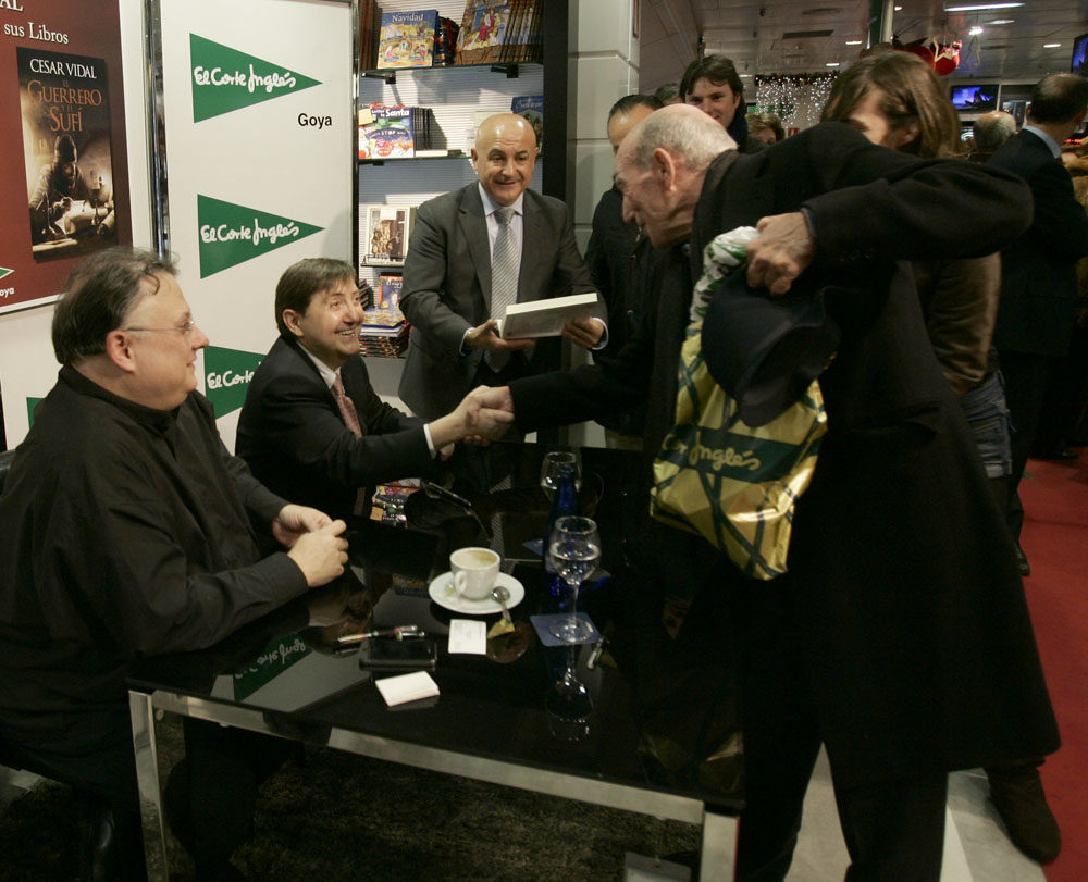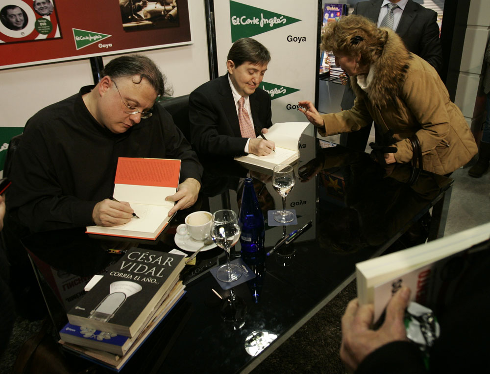 Federico Jiménez Losantos y César Vidal saludan a los lectores que se acercaban hasta El Corte Inglés de Goya para que les firmaran los ejemplares