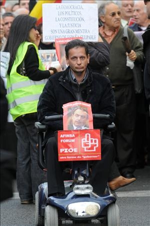 Entre gritos de "Zapatero dimisión", miles de personas afectadas por Fórum y Afinsa se han manifestado por las calles de Madrid. (EFE)