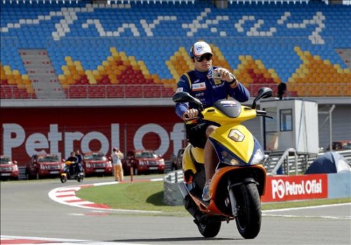 El piloto brasileño de Renault Nelson Piquet Jr conduce una moto en el circuito de Estambul de Turquía, hoy, jueves 08 de mayo. El Gran premio de Turquía de Fórmula Uno tendrá lugar en el circuito Parque Estambul el próximo 11 de mayo. EFE