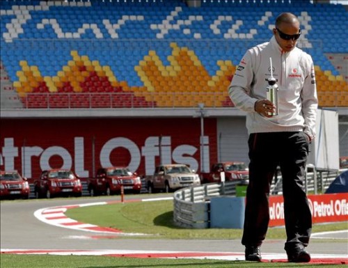 El piloto de McLaren Mercedes el británico Lewis Hamilton es fotografiado en el circuito de Estambul de Turquía, hoy, jueves 08 de mayo. El Gran premio de Turquía de Fórmula Uno tendrá lugar en el circuito Parque Estambul el próximo 11 de mayo. EFE